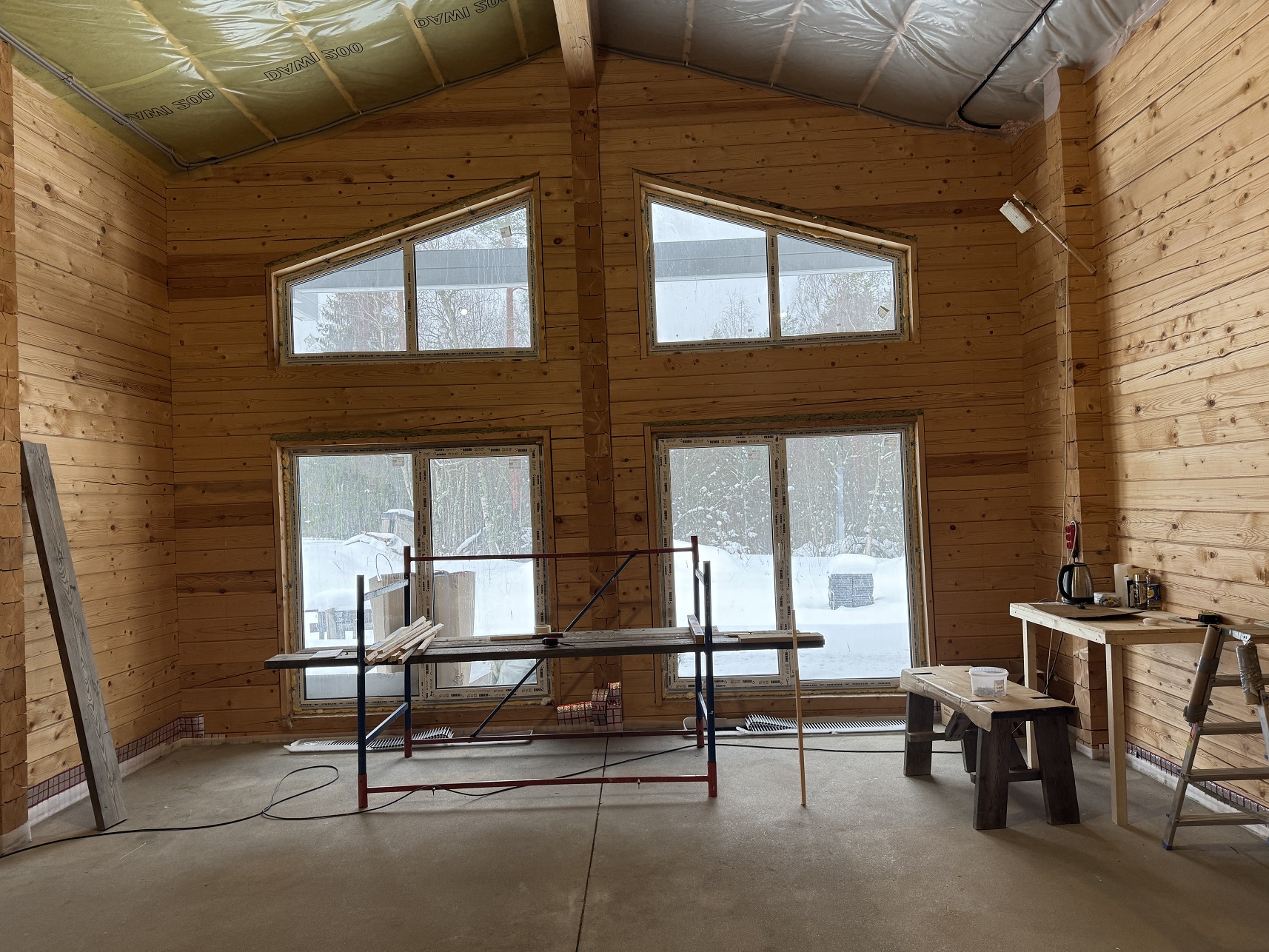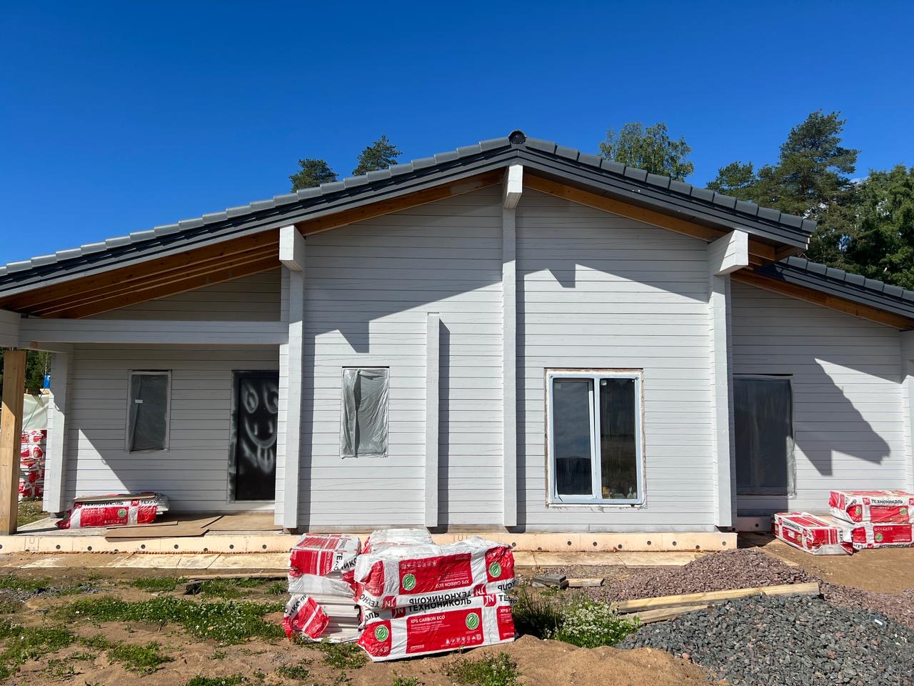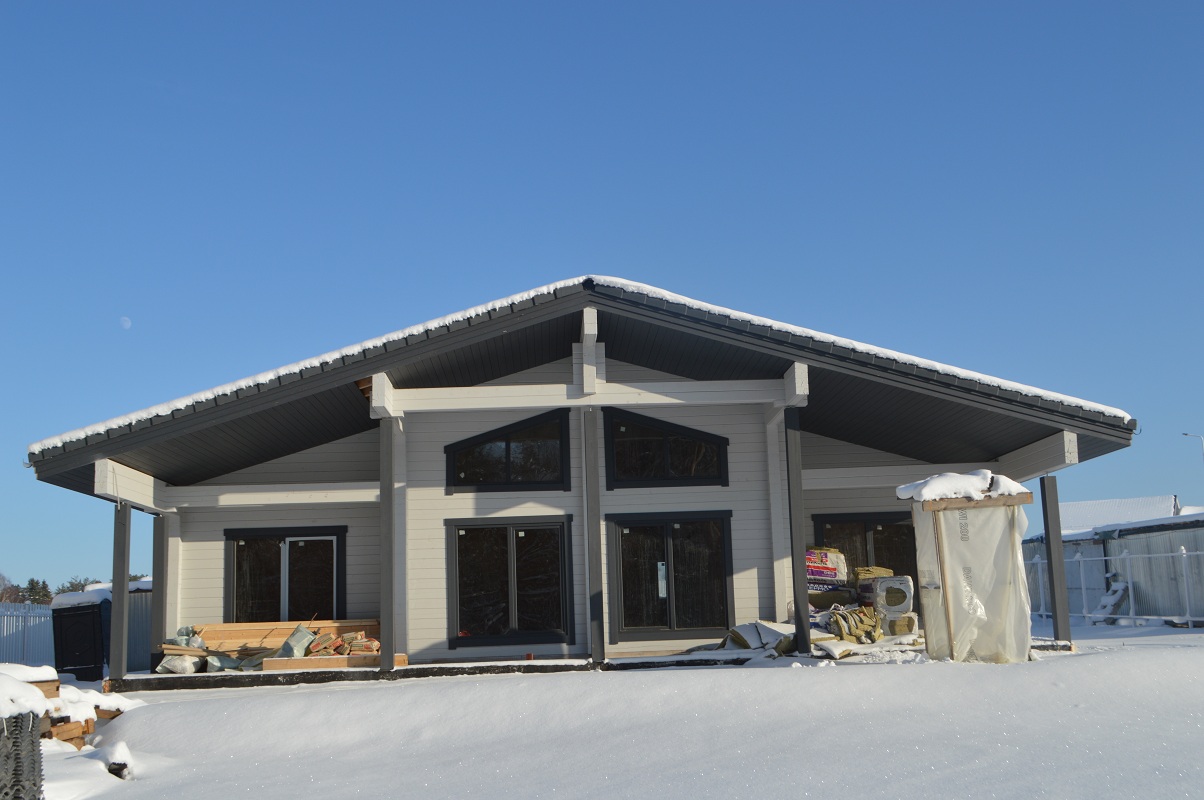 На сегодняшний день (20.06.22) выполнен рабочий проект одноэтажного дома с габаритными размерами 14,5х13,9 м., общей площадью 174 м.кв. из профилированного бруса камерной сушки.